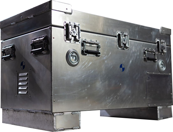 • Construction: Welded aluminum exterior with stainless steel rivets, hinges, and latches.